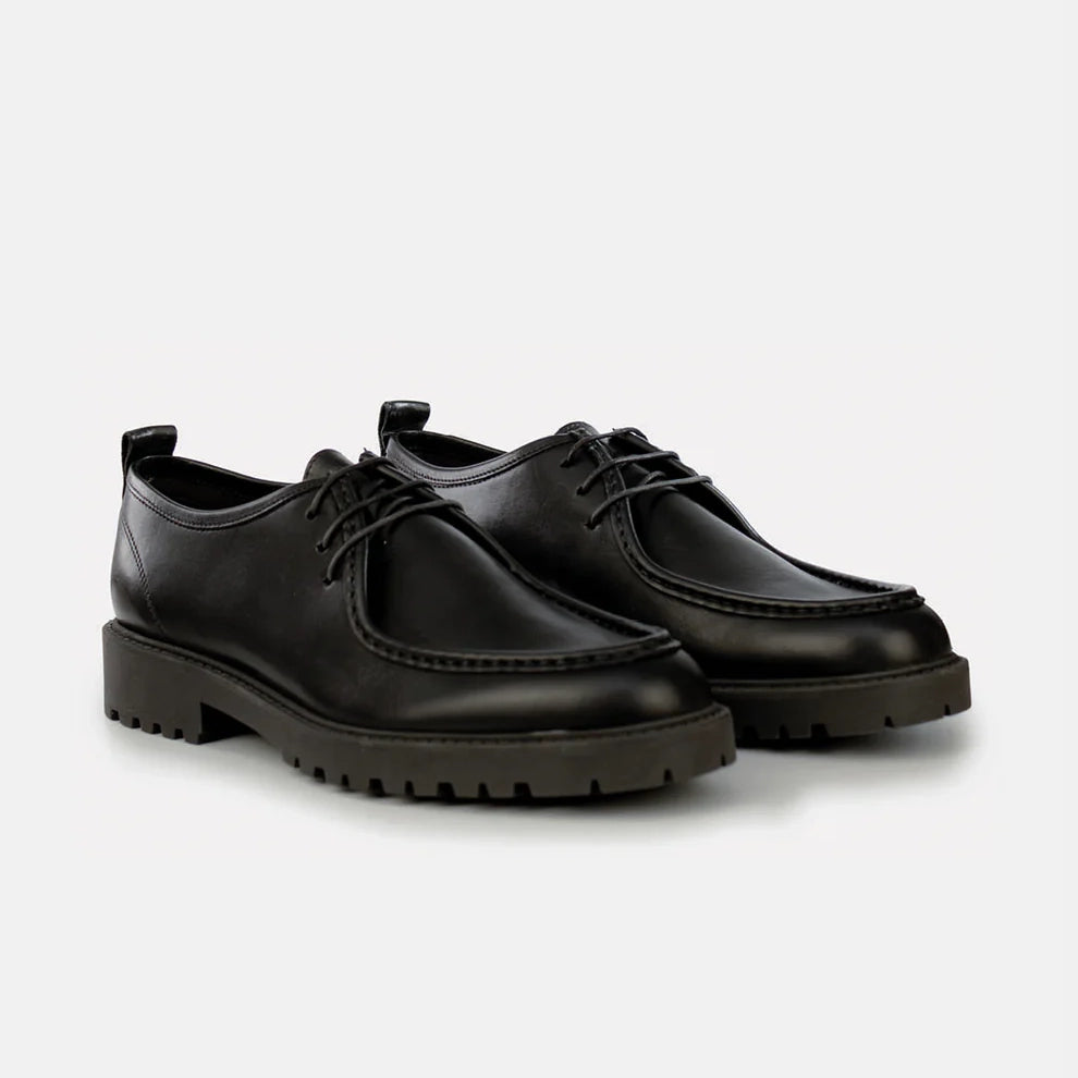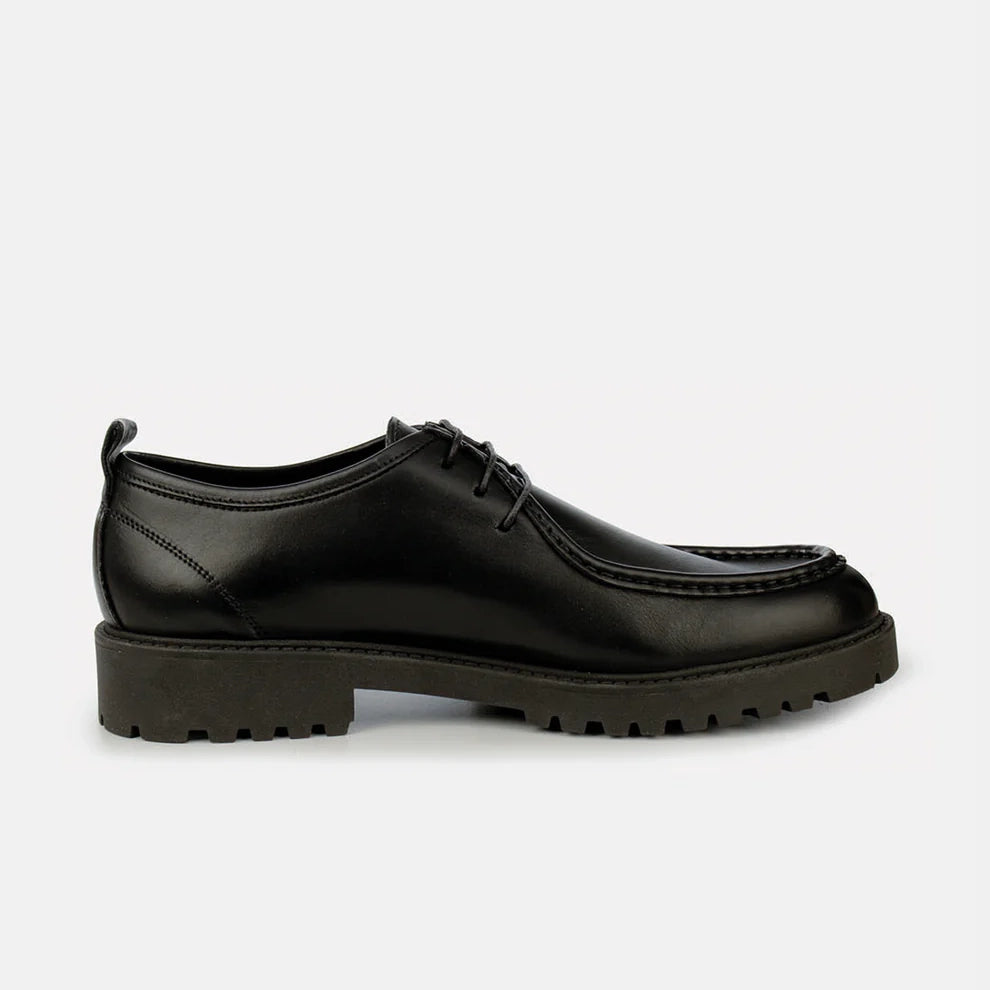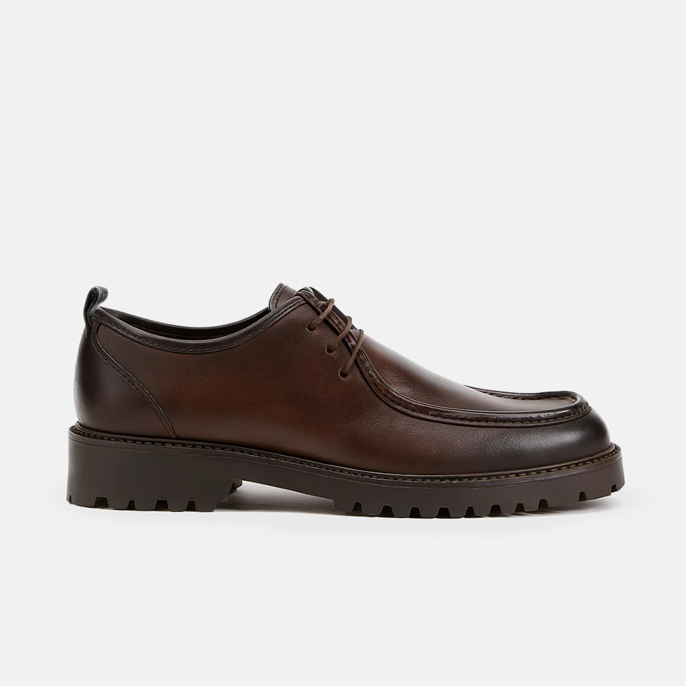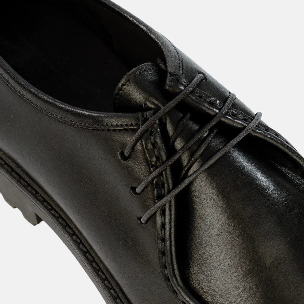 Derby stringata in pelle con cuciture a barchetta e suola track