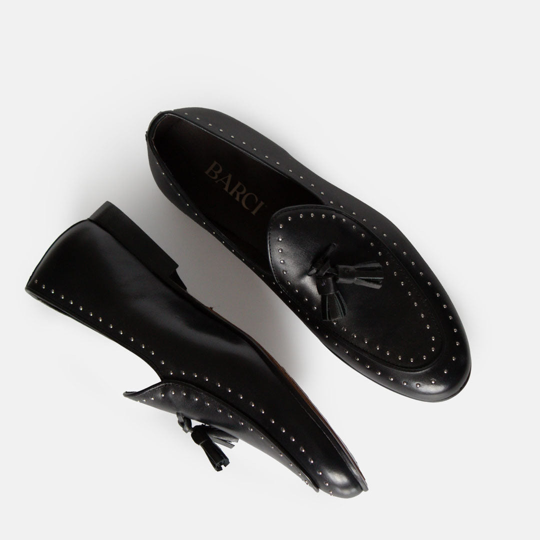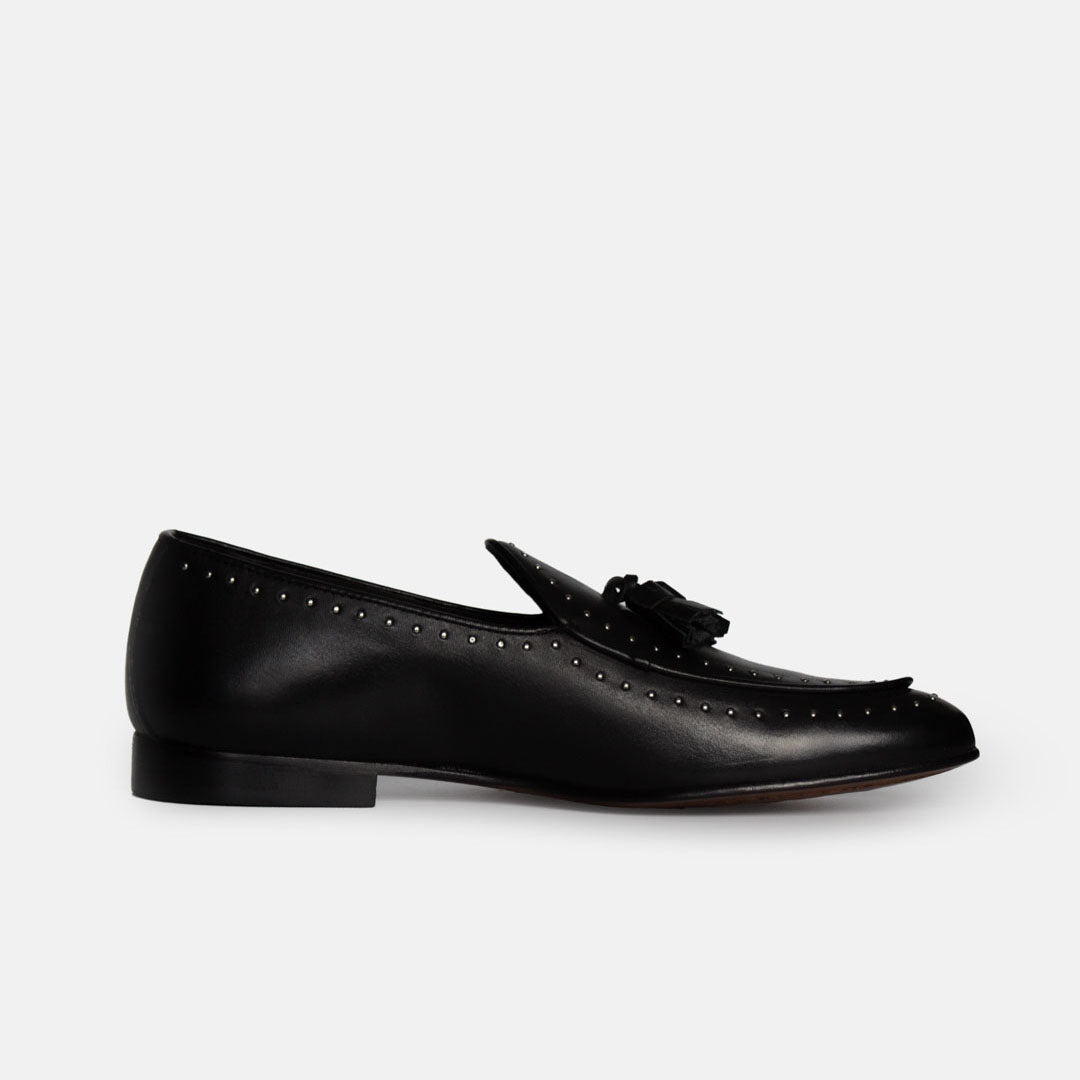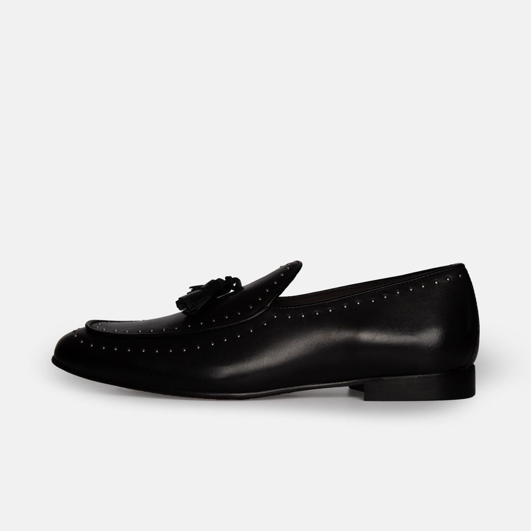 Borromini incarna l'eleganza e il savoir-faire dell'artigianato italiano. Realizzato in pregiata pelle nera, si distingue per il suo design raffinato, impreziosito da dettagli micro-brogue lungo il profilo. Il classico motivo con nappine dona un tocco sofisticato, rendendolo perfetto sia per occasioni formali che per look più disinvolti.