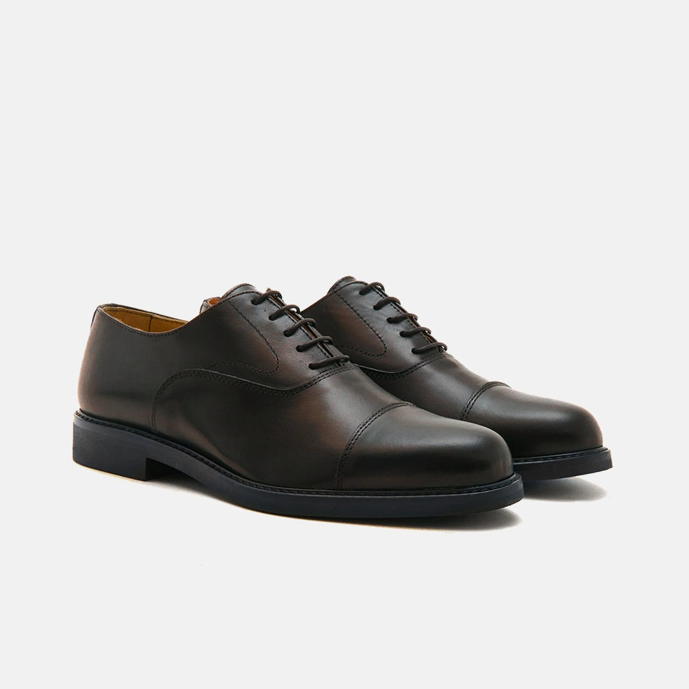 Bramante è una scarpa Oxford classica in pelle, pensata per chi cerca un'eleganza senza tempo. La sua costruzione artigianale garantisce comfort e durata, mentre la punta liscia e la chiusura stringata ne esaltano lo stile sofisticato. Perfetta per eventi formali e look business impeccabili.