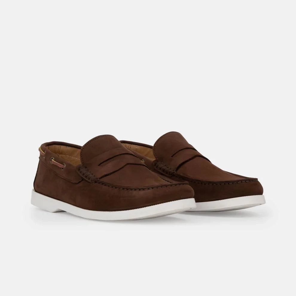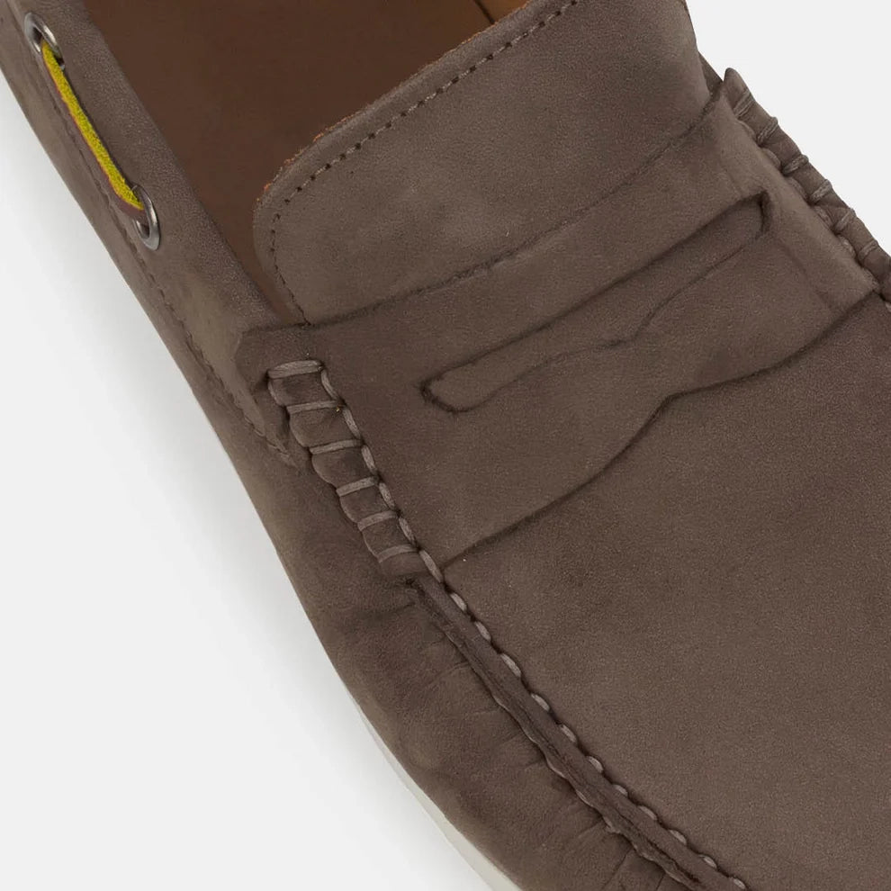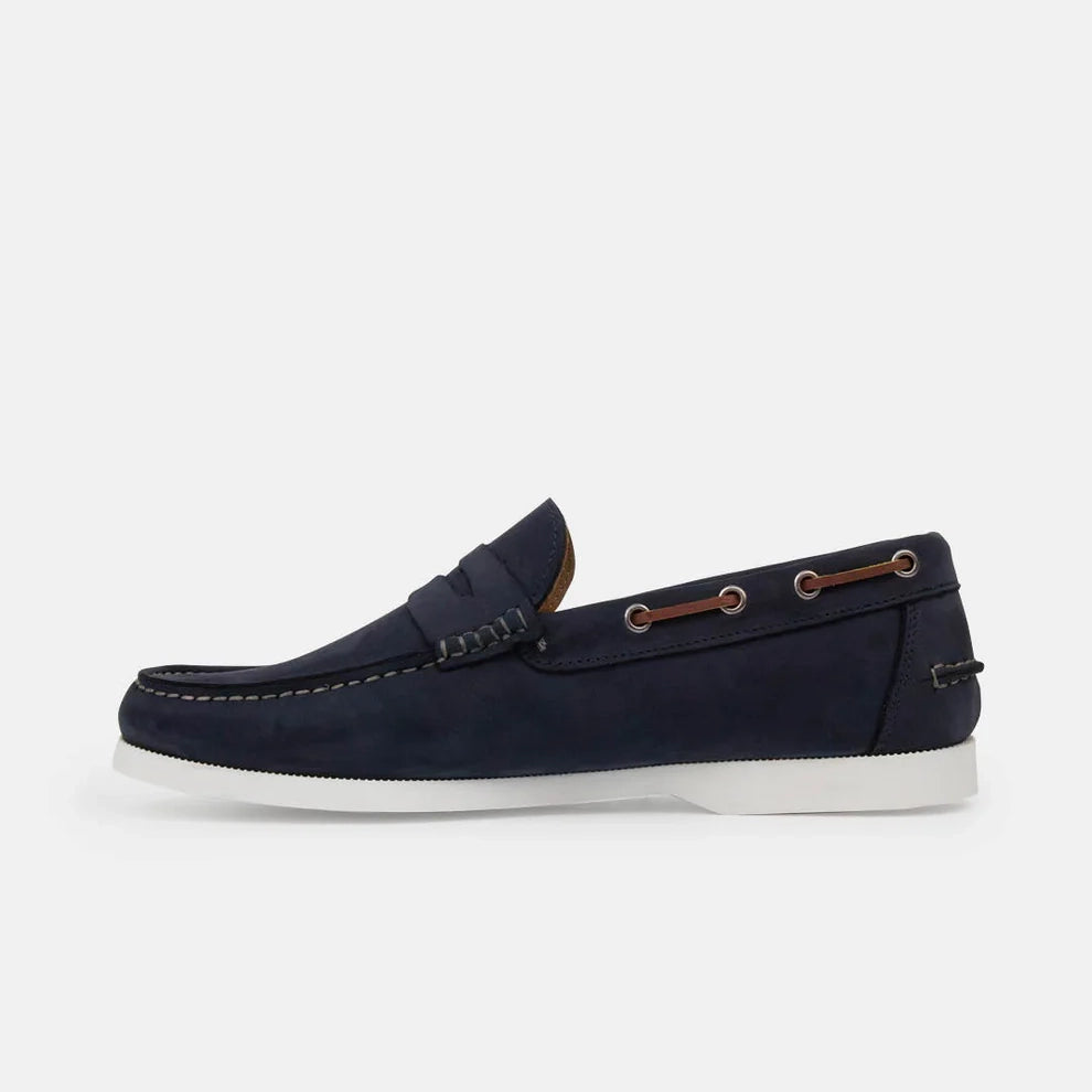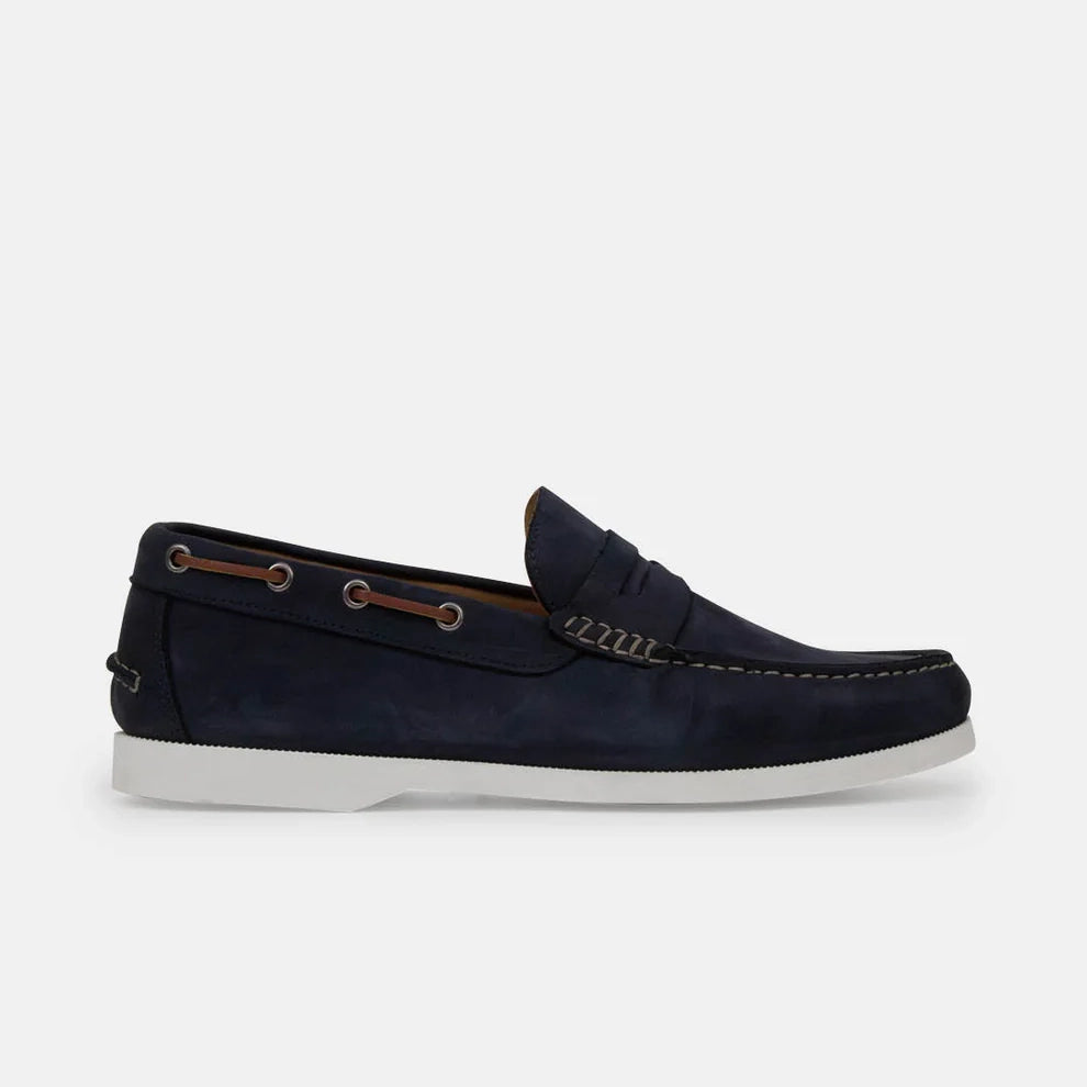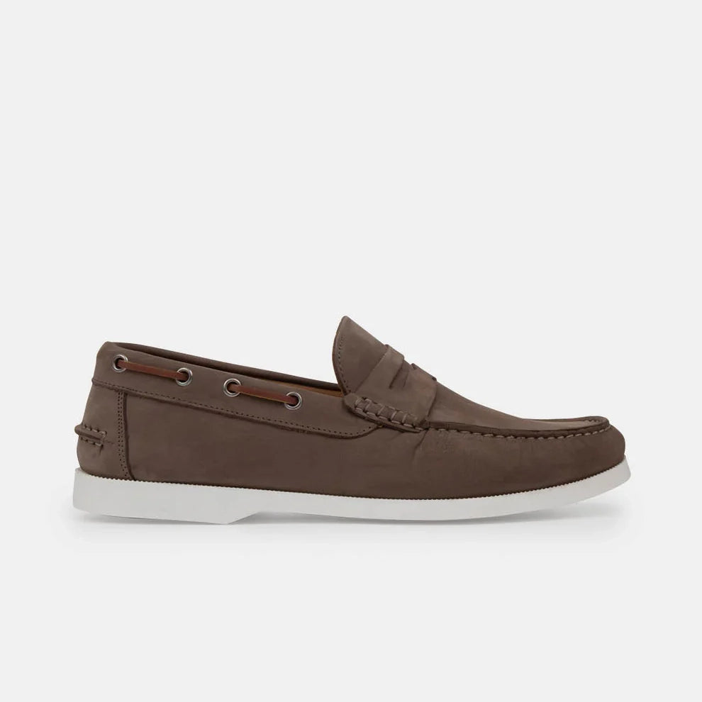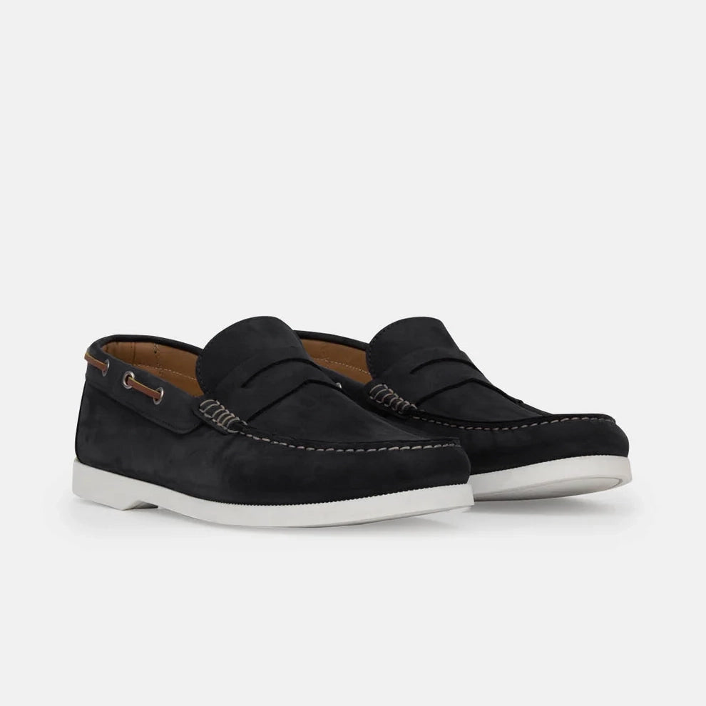 Leonardo, una Boat Shoe che unisce il design elegante delle scarpe da barca e la praticità del mocassino. Realizzata in morbido scamosciato, la suola bianca conferisce un tocco contemporaneo. La soletta removibile e la fodera senza imbottitura offrono un comfort ottimale per un fit personalizzato.