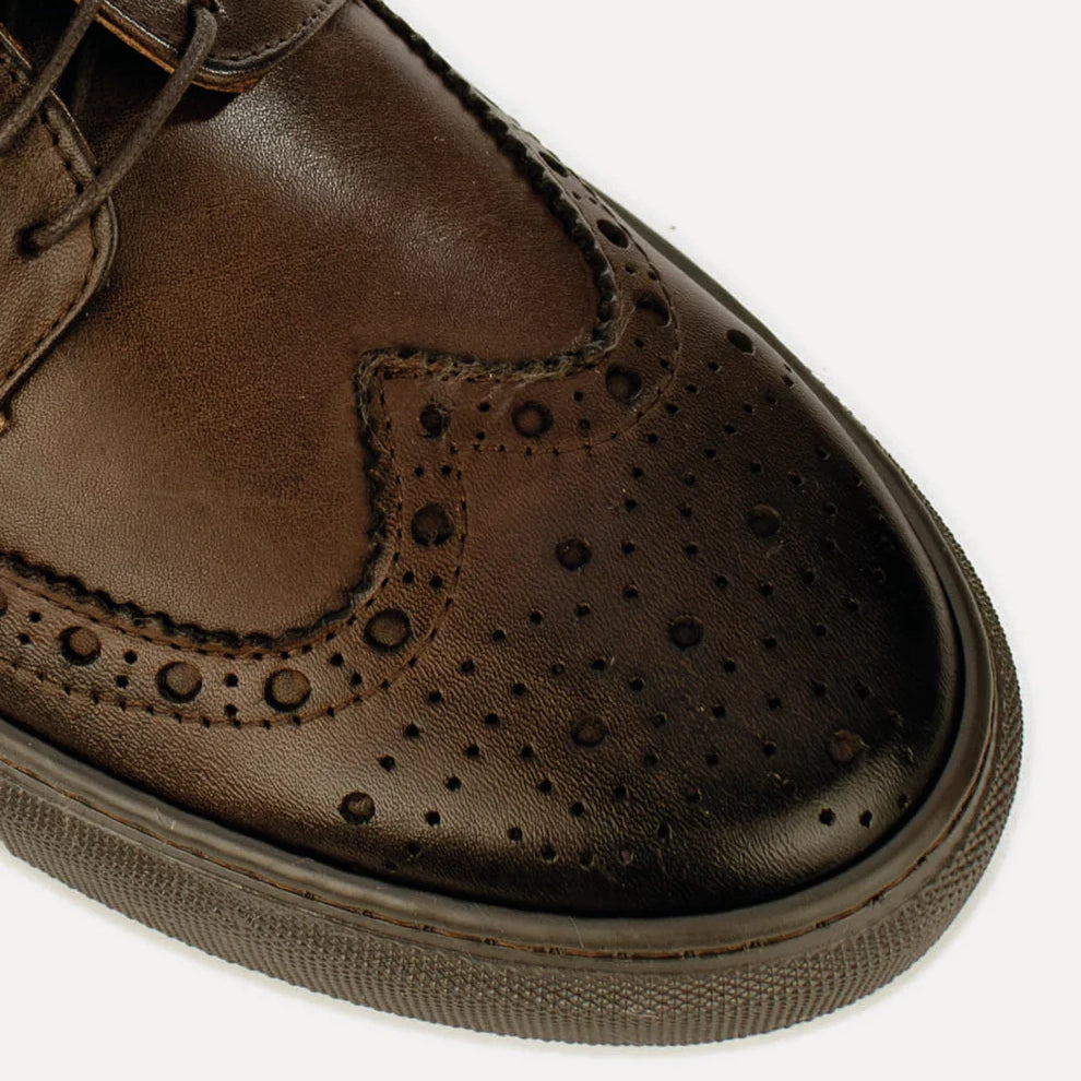 Mantegna, una sneaker dallo stile raffinato e contemporaneo, realizzata in vera pelle con dettagli brogue. Con dettagli perforati e una suola resistente, unisce comfort e design unico. Ideale per ogni stagione, rappresenta un'eccellenza artigianale italiana.
