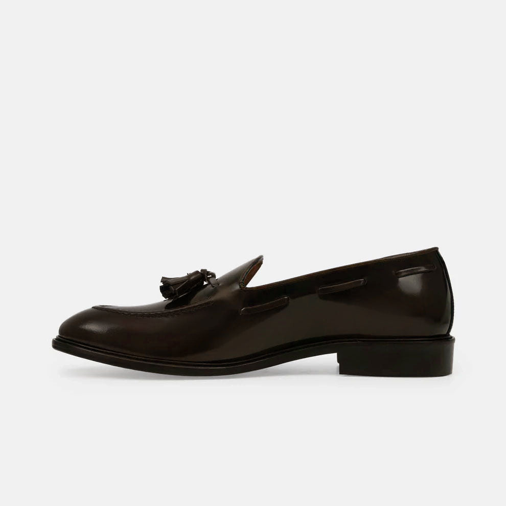 Eleganza senza tempo e materiali di alta qualità si uniscono nel Michelangelo, un mocassino che rappresenta il perfetto equilibrio tra tradizione e raffinatezza. Realizzato in vitello, un pellame pregiato con una texture lucida e una nuance sfumata, questo mocassino è arricchito dal dettaglio classico dei nappi. La sua forma affusolata e la suola sottile in cuoio e gomma leggera ne fanno un modello ideale per chi cerca stile e comfort senza compromessi.