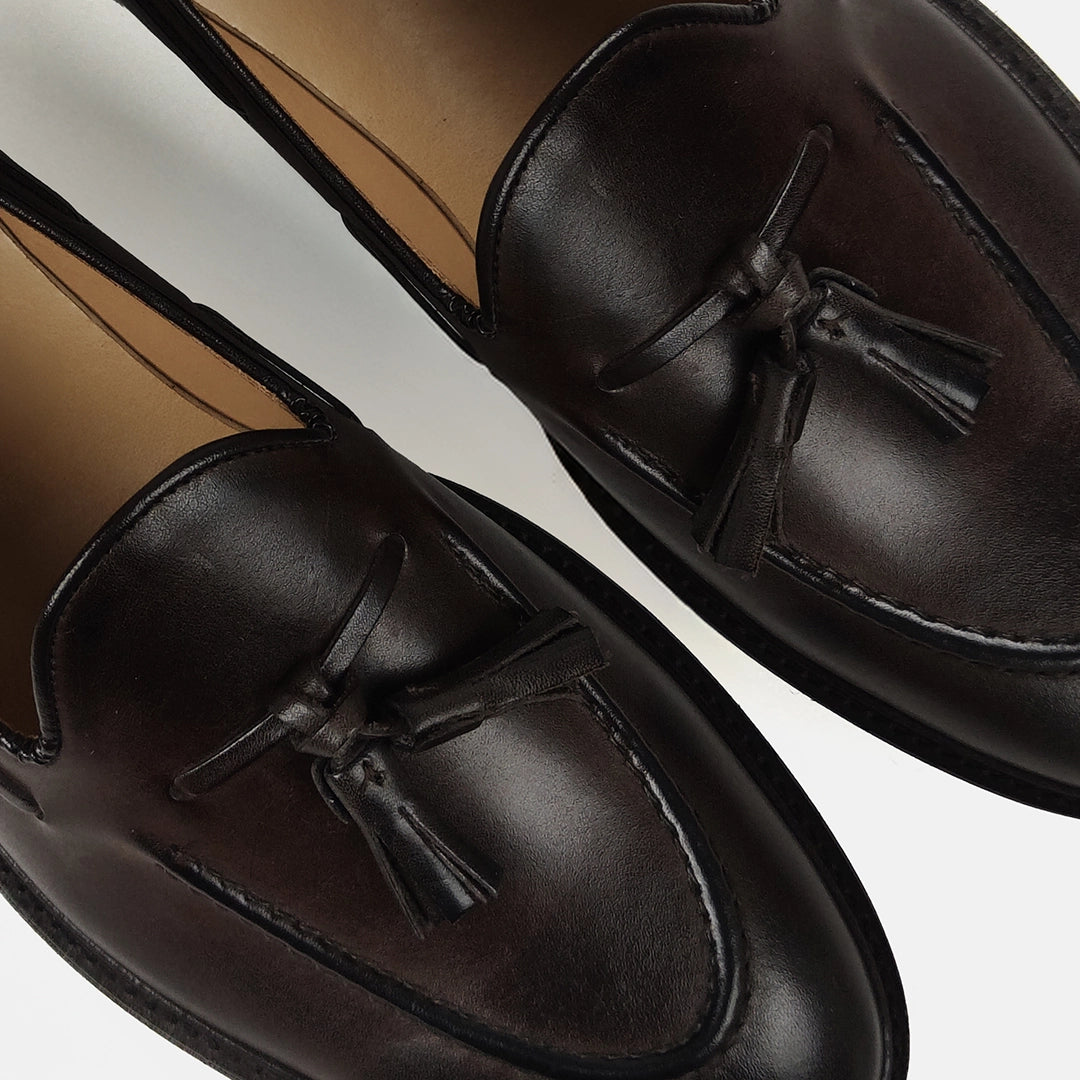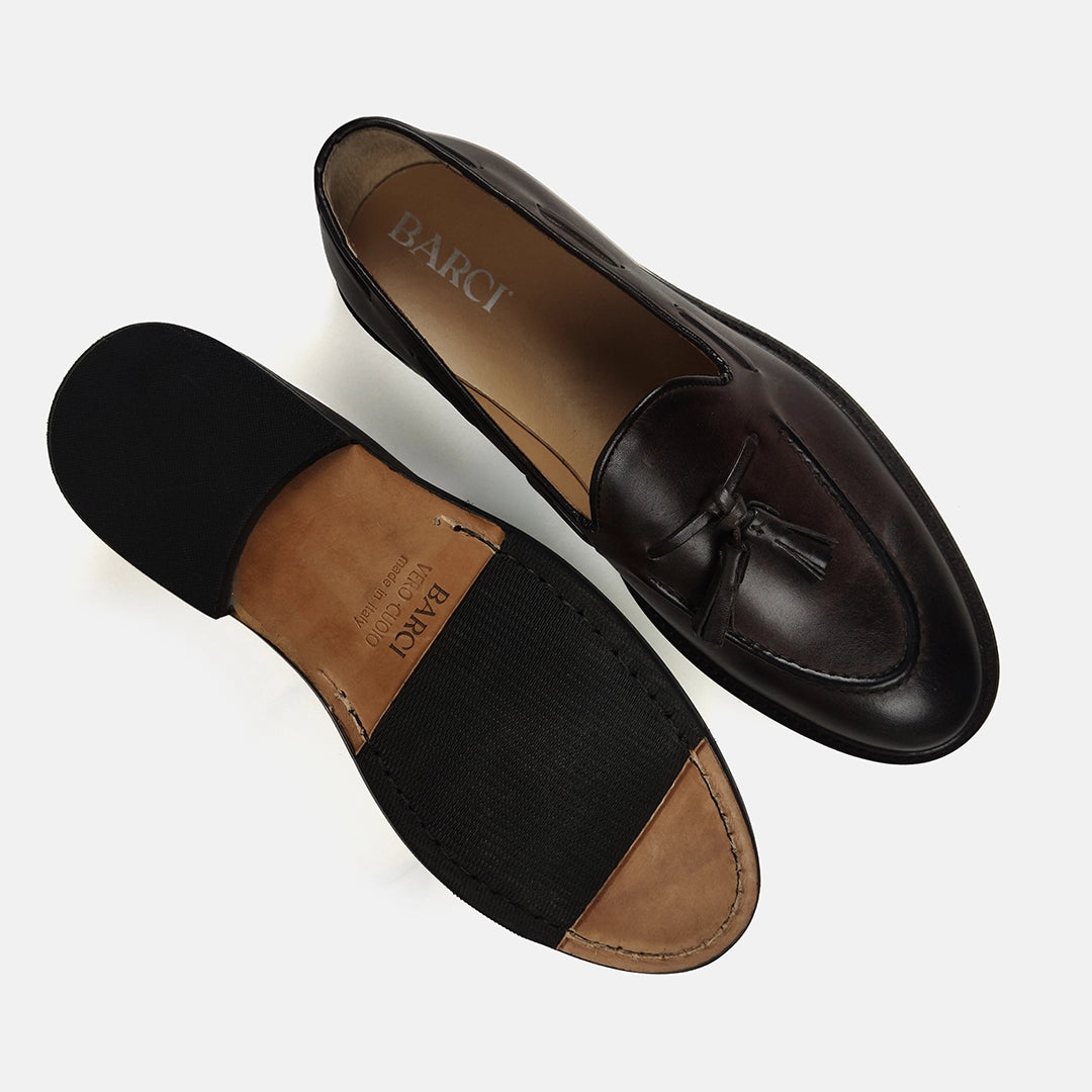 Eleganza senza tempo e materiali di alta qualità si uniscono nel Michelangelo, un mocassino che rappresenta il perfetto equilibrio tra tradizione e raffinatezza. Realizzato in vitello, un pellame pregiato con una texture liscia e una nuance sfumata, questo mocassino è arricchito dal dettaglio classico dei nappi. La sua forma affusolata e la suola sottile in cuoio e gomma leggera ne fanno un modello ideale per chi cerca stile e comfort senza compromessi.