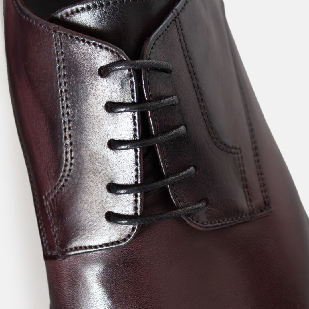 Perugino è una derby stringata in pelle bordeaux con una punta leggermente allungata, ideale per chi cerca un equilibrio tra eleganza e comfort. La qualità artigianale italiana e il design raffinato lo rendono perfetto per outfit sia formali che casual.