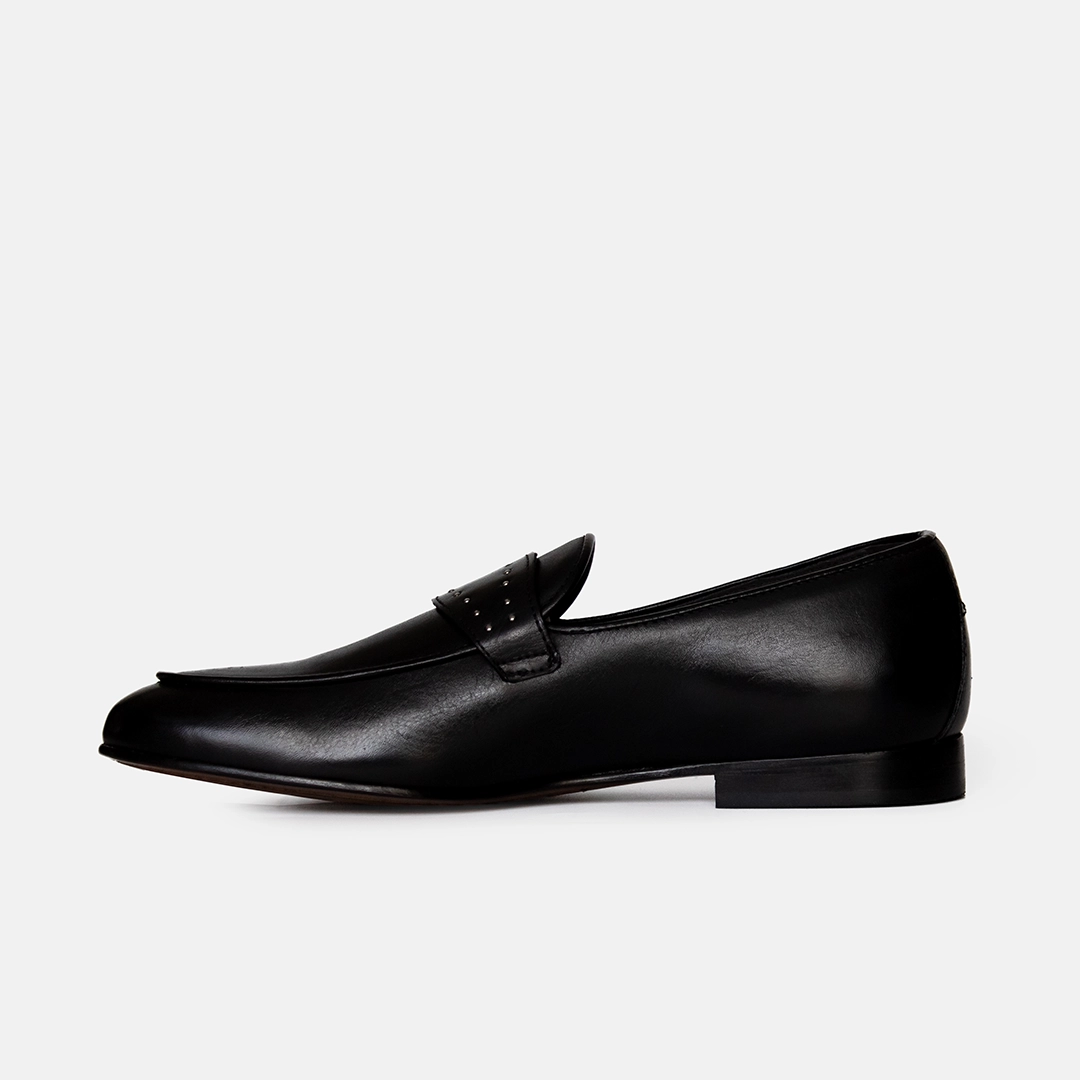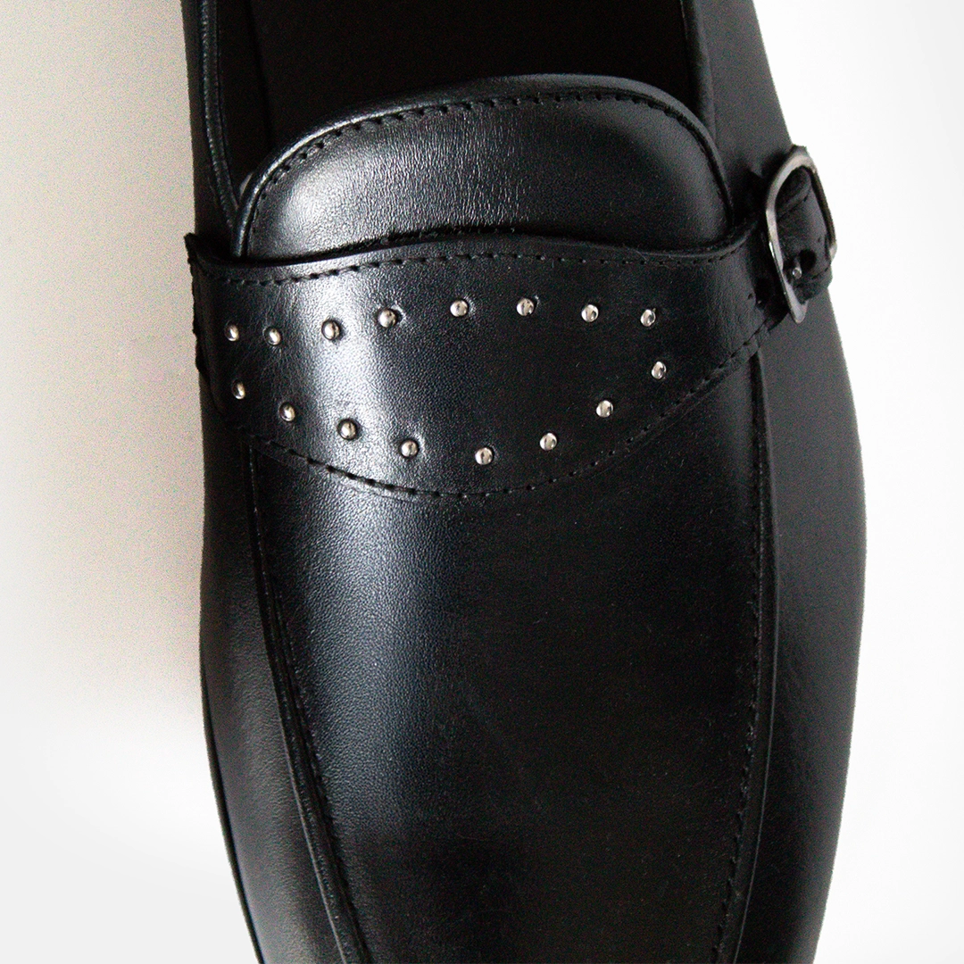Mocassino artigianale in pelle nera Inserto decorato con micro-borchie