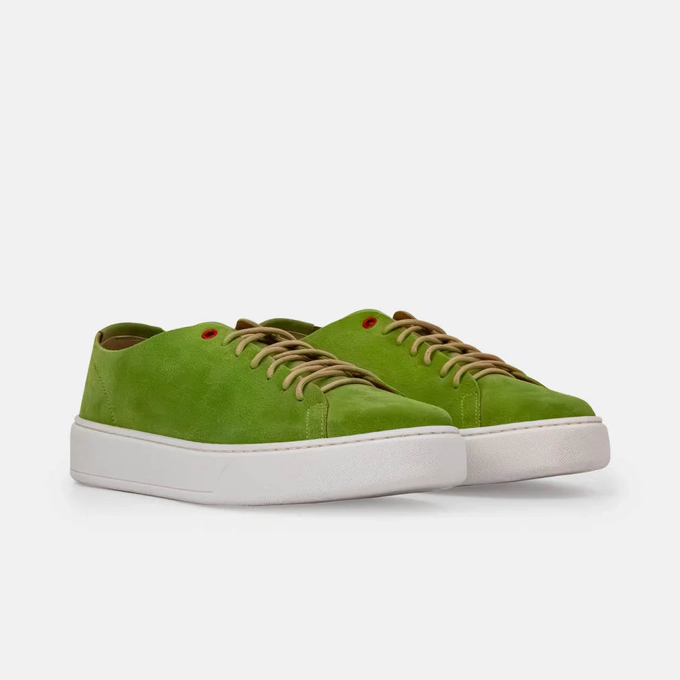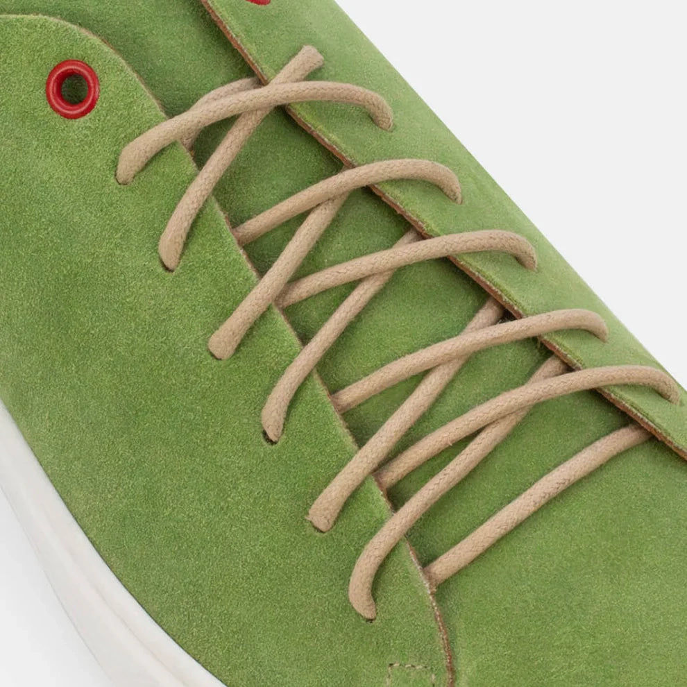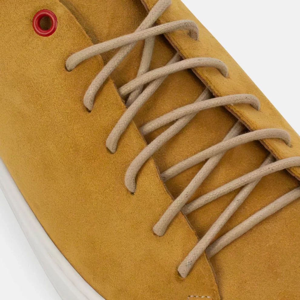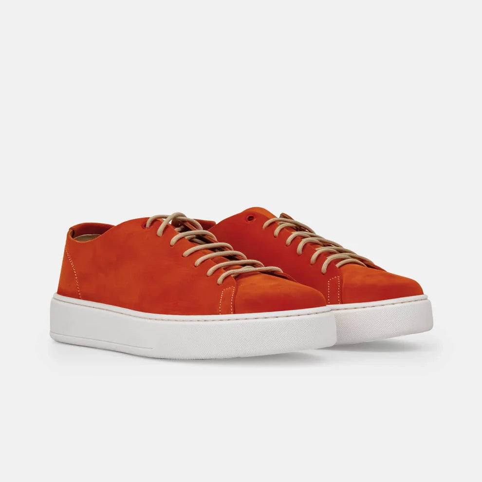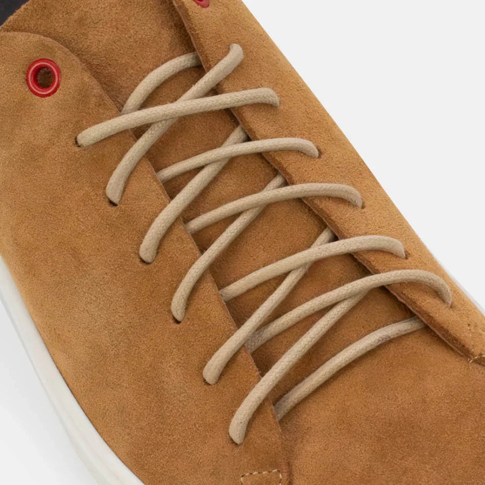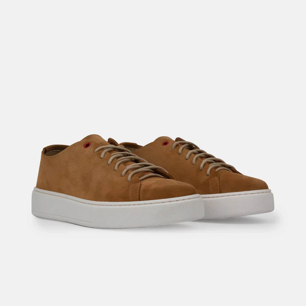 Tiziano è una sneaker elegante e confortevole, realizzata in morbido camoscio con una finitura in crosta tabacco. La sua suola in gomma bianca a contrasto aggiunge un tocco distintivo e garantisce resistenza e aderenza. Con lacci cerati e fodera in pelle, offre un comfort duraturo, rendendola perfetta per ogni giorno senza rinunciare a uno stile sofisticato.