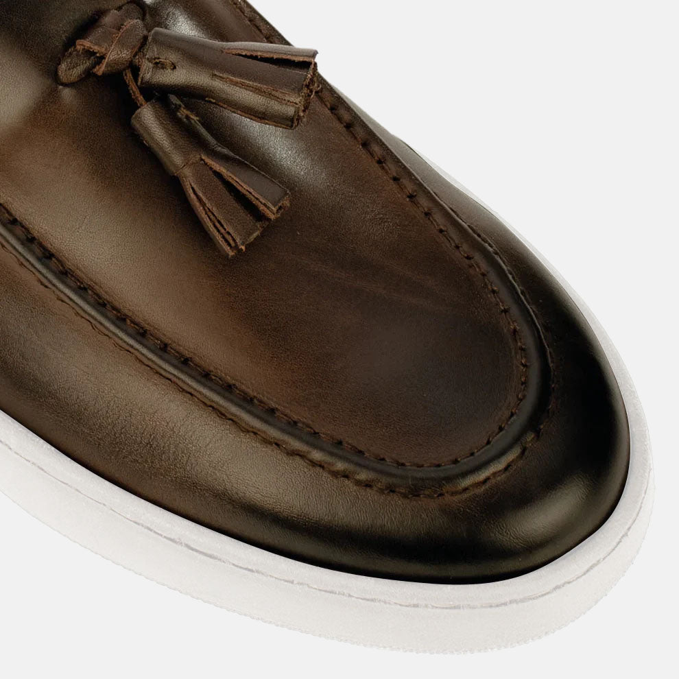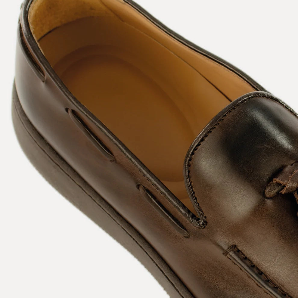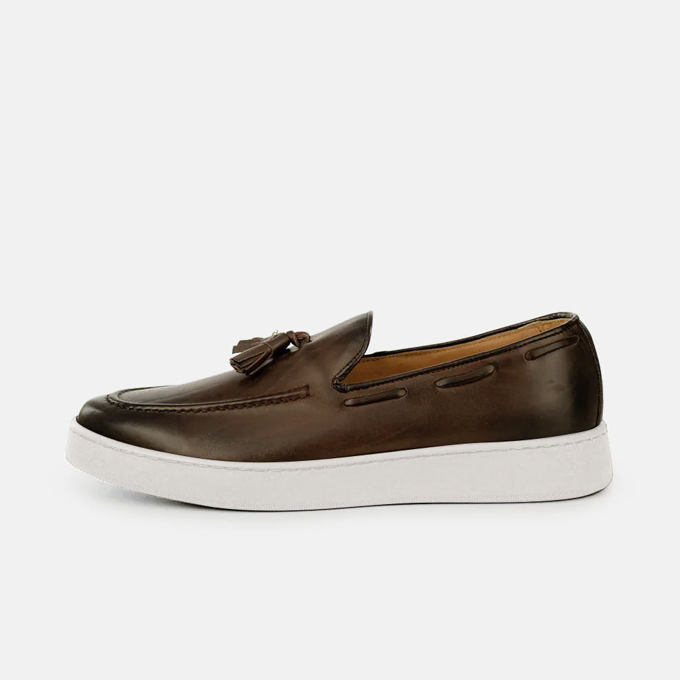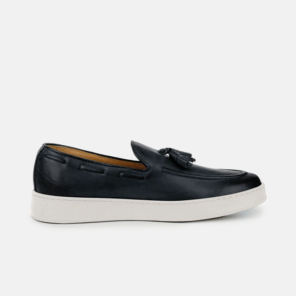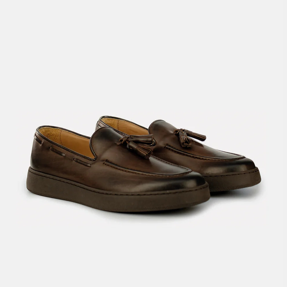 Il Verrocchio è un casual loafer che combina l'eleganza del mocassino con il comfort di una sneaker. Realizzato in vera pelle italiana, è dotato di un plantare anatomico estraibile e fodera in pelle. La suola in gomma testa di moro completa il design moderno. Perfetto per ogni stagione, è la scelta ideale per uno stile raffinato e comodo.